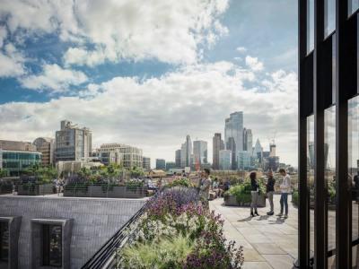 Originally built in 1895 for the Post Office, the building’s grand stone‑clad facades will be largely retained while the internal layout is reconfigured to meet contemporary needs. Relocating the core enables expansive, flexible floorplates of more than 30,000 sq ft, supporting a range of work settings and future adaptation. A double‑height reception will bring a clear visual connection to Postman’s Park, while landscaped terraces offer panoramic views across London, including St Paul’s.