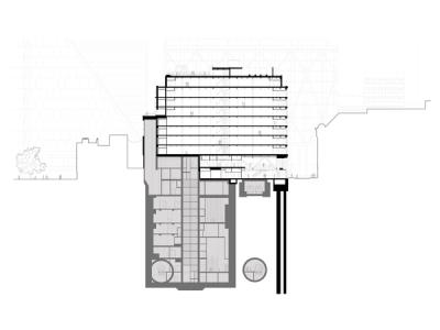 Strategic moves Built in advance to allow the new line to be constructed, the shaft limited the space available for piling, demanding extra structure above ground to carry the building. It takes the form of a large truss bridging the TfL infrastructure and a Metropolitan Line tunnel just 500 millimetres below. By introducing on-floor plant rooms we freed up the mezzanine level created by the truss, revealing its complex structure in informal lounges and a large cycle centre, which in turn create more value for tenants.