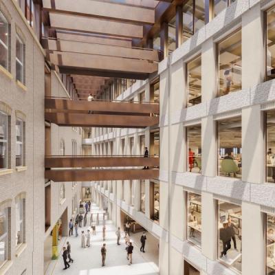 A public-facing project Alfred Waterhouse, architect of London’s Natural History Museum, designed 21 buildings for the Prudential Assurance Company during his lifetime. The head office on High Holborn, built between 1876 and 1901, was a grand complex with all the innovations of the time including hot running water and electric lighting. Primarily it was a public building, a place where anyone could come and have a bespoke policy drawn up while they waited. Twentieth-century additions to the building have turned its back on the neighbours: you’re not sure if you should be there. Our project will restore its public face, knitting it more closely into its neighbourhood.