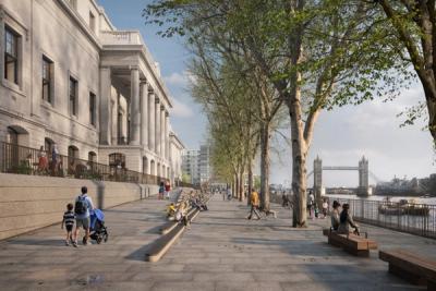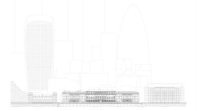 Cultural offer The project also presented an opportunity to take a formerly inaccessible building and open it up as a place for all Londoners, reinforcing the City’s cultural offer. Our design creates a new north-south route through the building with exhibitions, displays and food and drink outlets. The oldest part of the building – the west wing – will have a lounge and library, and a café overlooking the Thames. On the waterfront itself, the large forecourt will be opened up for the first time, filling a missing section of public realm on the Thames’ north bank.