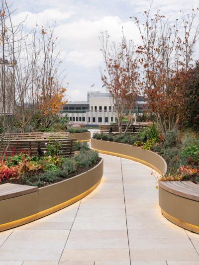Retrofitting for net zero Our client, Hines, acquired the site through a core fund which required as much of the existing building to be reused as possible – and for the project to target net zero. Our deep retrofit has retained 75% of the original concrete frame and considerably reduced its energy consumption. We added two new floors to the original six storeys, designing a lightweight façade that would avoid the need for foundation strengthening and improve environmental performance.