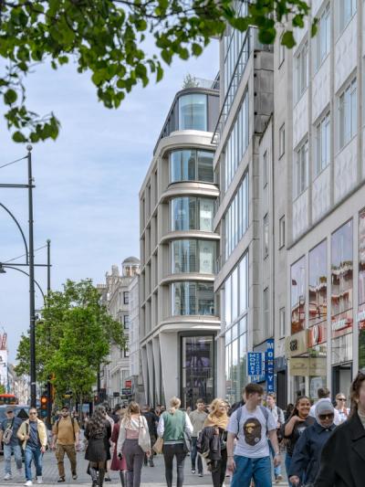 Optimising opportunity Our work at The Burlian demonstrates how unloved assets in prime locations – such as London’s West End – can be repositioned to attract new tenants without undue cost to the environment. The site is at the corner of two famous retail thoroughfares – Oxford Street and higher-end, smaller-scale New Bond Street. With an awkward L-shaped site and an existing 1970s building, we set out to optimise the retail while finding a distinctive identity for the boutique offices above – which are now positioned for fintech or legal tenants.