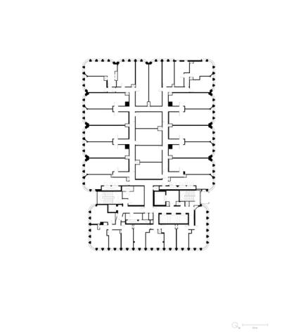 Rooftop extrusion To accommodate the hotel’s 266 rooms, we extended the building up by three floors. This was a structural and contextual challenge, resolved through close collaboration with engineers Heyne Tillett Steel. The façade’s existing precast concrete panels are an integral part of the structure and could not be removed without significant remodelling, so we threaded new steel columns in to take the weight of the additional floors. The concrete panels also informed the external form of the building: the new floors read as an extrusion of those below, stepping back in deference to the Grade I-listed St Pancras station opposite.