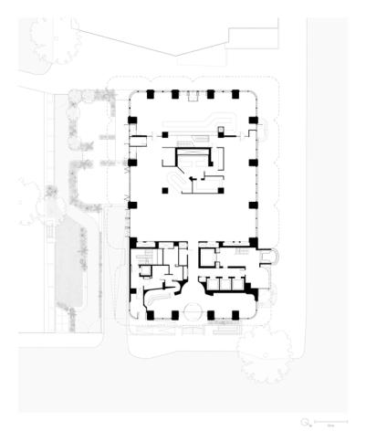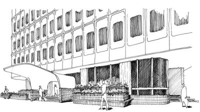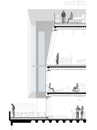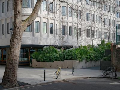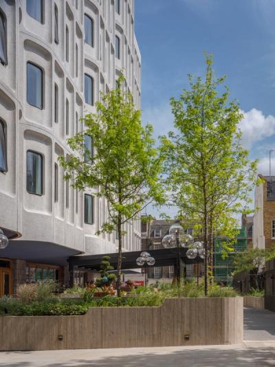 Outside space Even in this busy central London location, we have carved out small areas of external space. The ground-floor bars spill out into a garden to the south of the building away from the busy road, part of which has been reinstated as a public right of way. On the eighth floor, bedrooms have private terraces with outside baths, while the ninth and tenth floor bays cantilever out to host a restaurant and bar with a roof terrace above.
